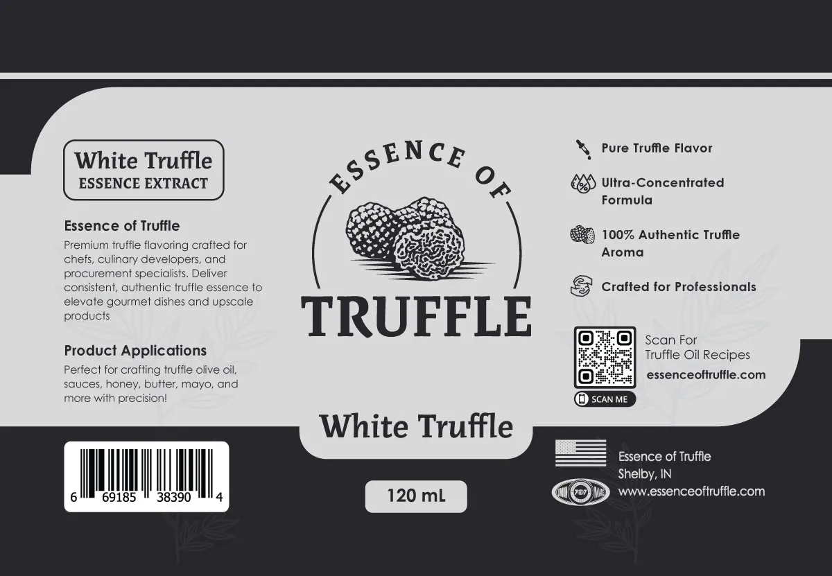 Essence of Truffle label showing branding and unique selling points Click to Expand Open Label Asset
