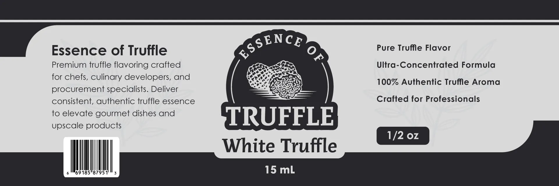 Experience the pinnacle of flavor with our White Truffle Extract. Crafted for chefs and food innovators, this premium 15 mL (½ oz) extract delivers consistent, authentic truffle flavor to elevate gourmet dishes and premium products.